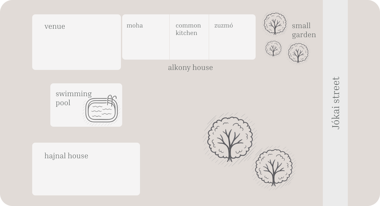 The Lights and Stones garden also includes a separate studio building with a unique atmosphere, available for smaller events of up to 20–25 people. Upon request, we are happy to provide a personalized offer for decoration and catering.