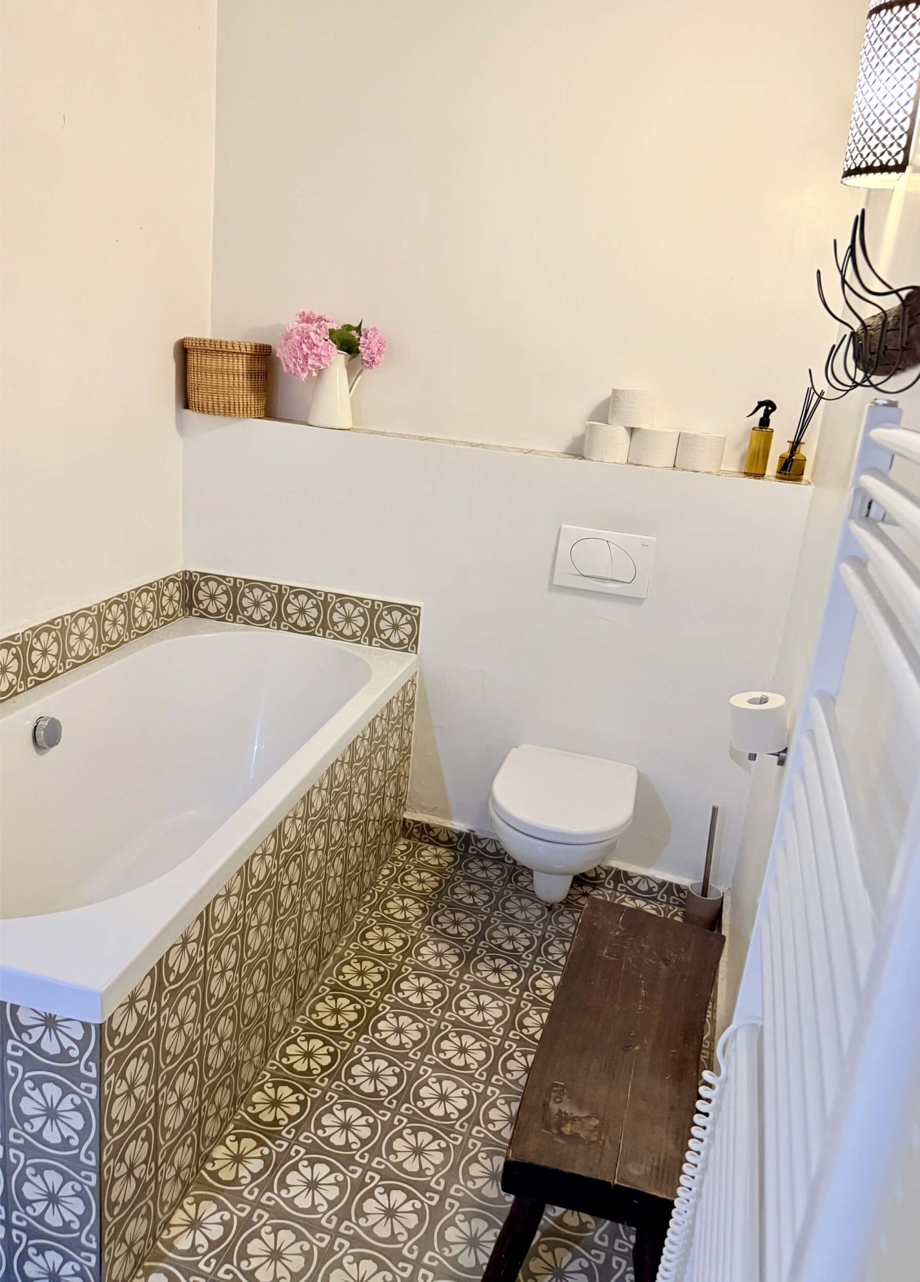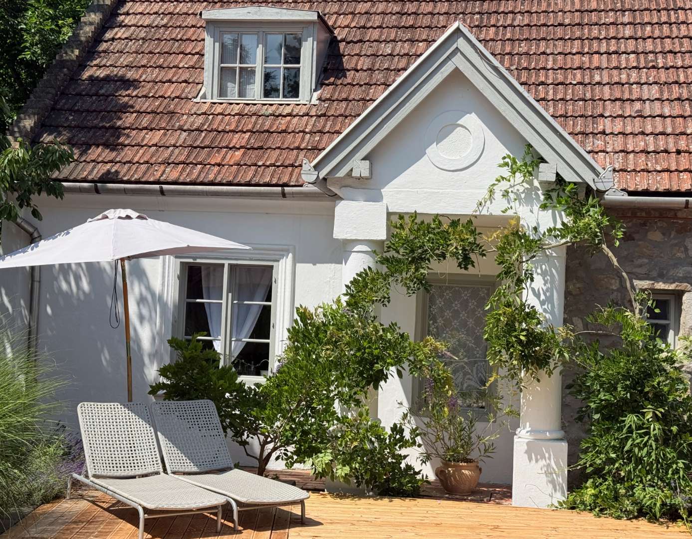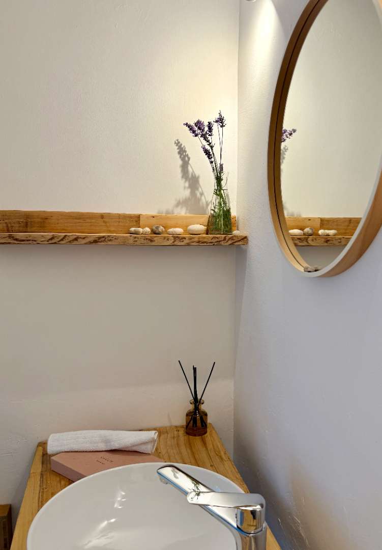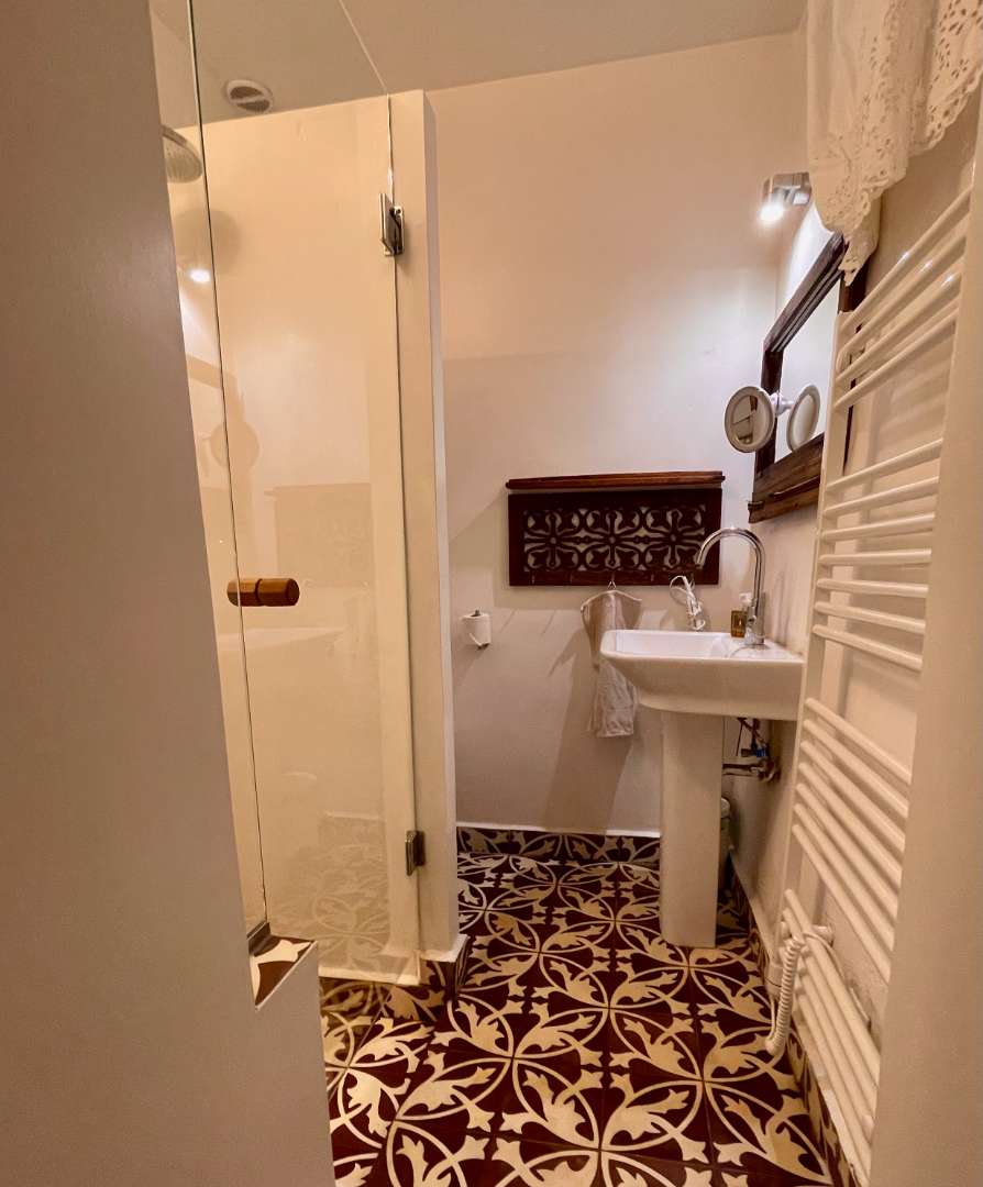 A szobához saját, zuhanyzóval és wc-vel ellátott fürdőszoba, valamint egy szintén kizárólagos használatú, a gyerekek által egykor “Tünderkertnek” nevezett kis titkos kert  is tartozik. Ebben a kis kertben zavartalanul megpihenhettek és ehhez természetesen kényelmes kerti bútorokat is találtok.