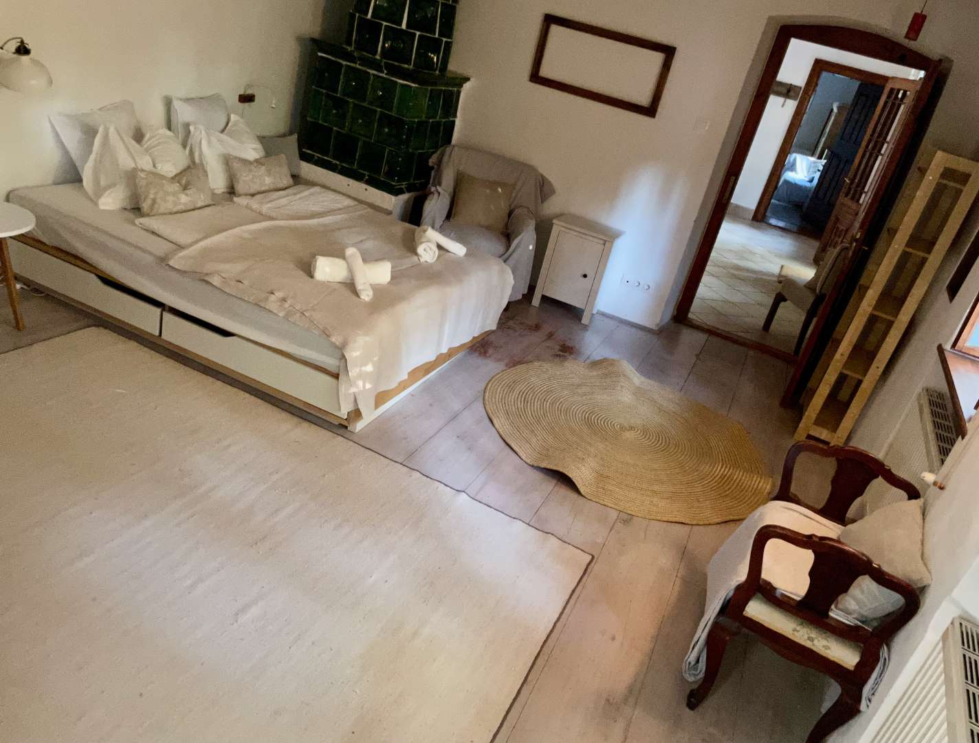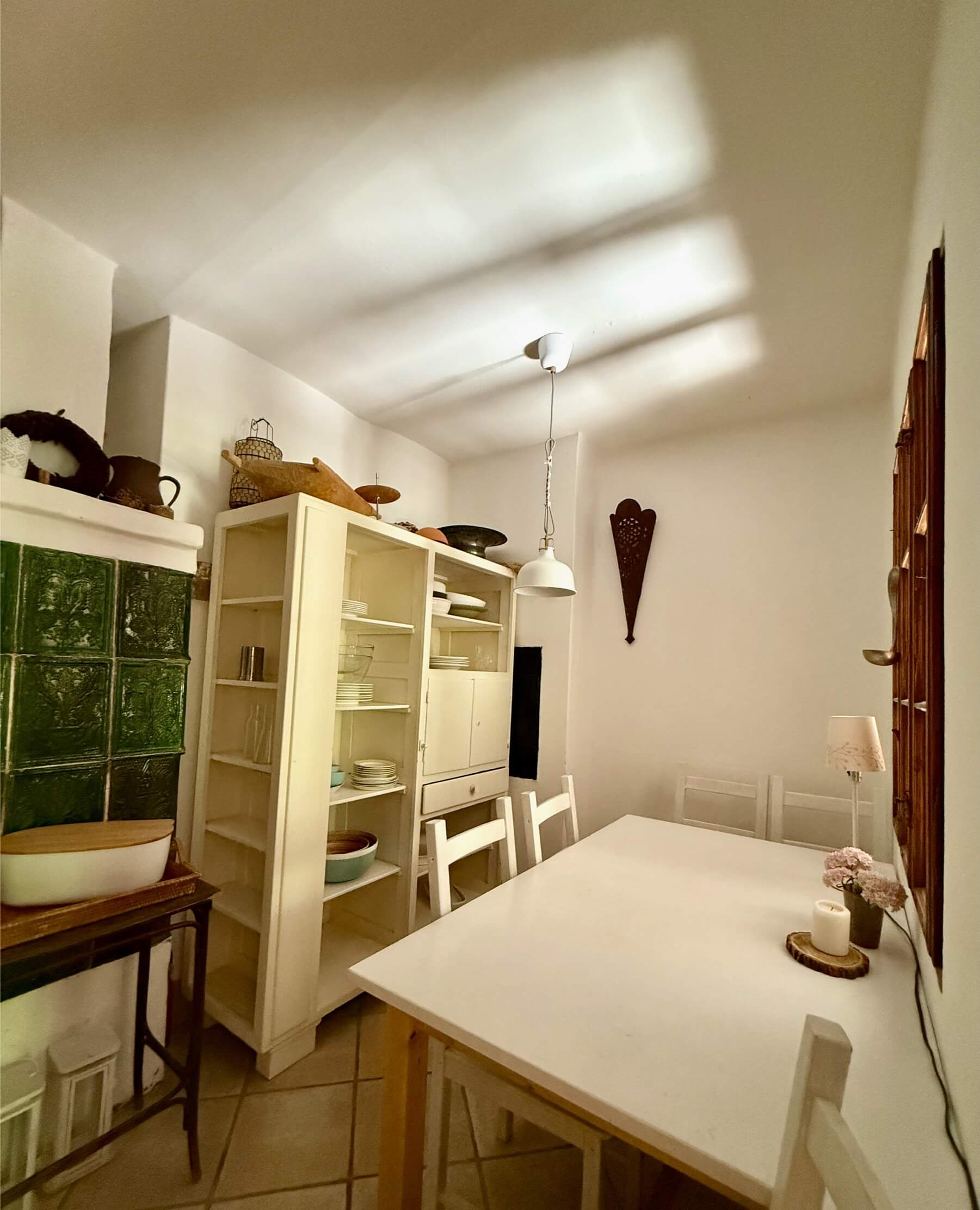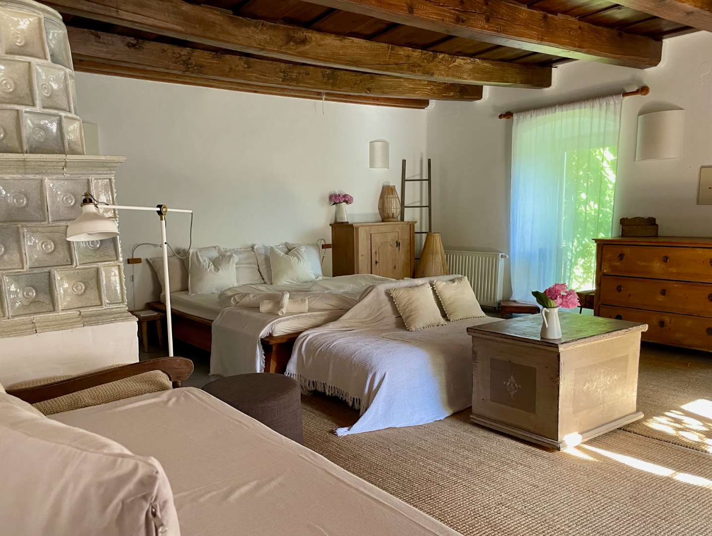 A Zuzmó lakrész a ház jobb oldalán található és a szobában álló gyönyörű, világosszürke cserépkályháról kapta a nevét.